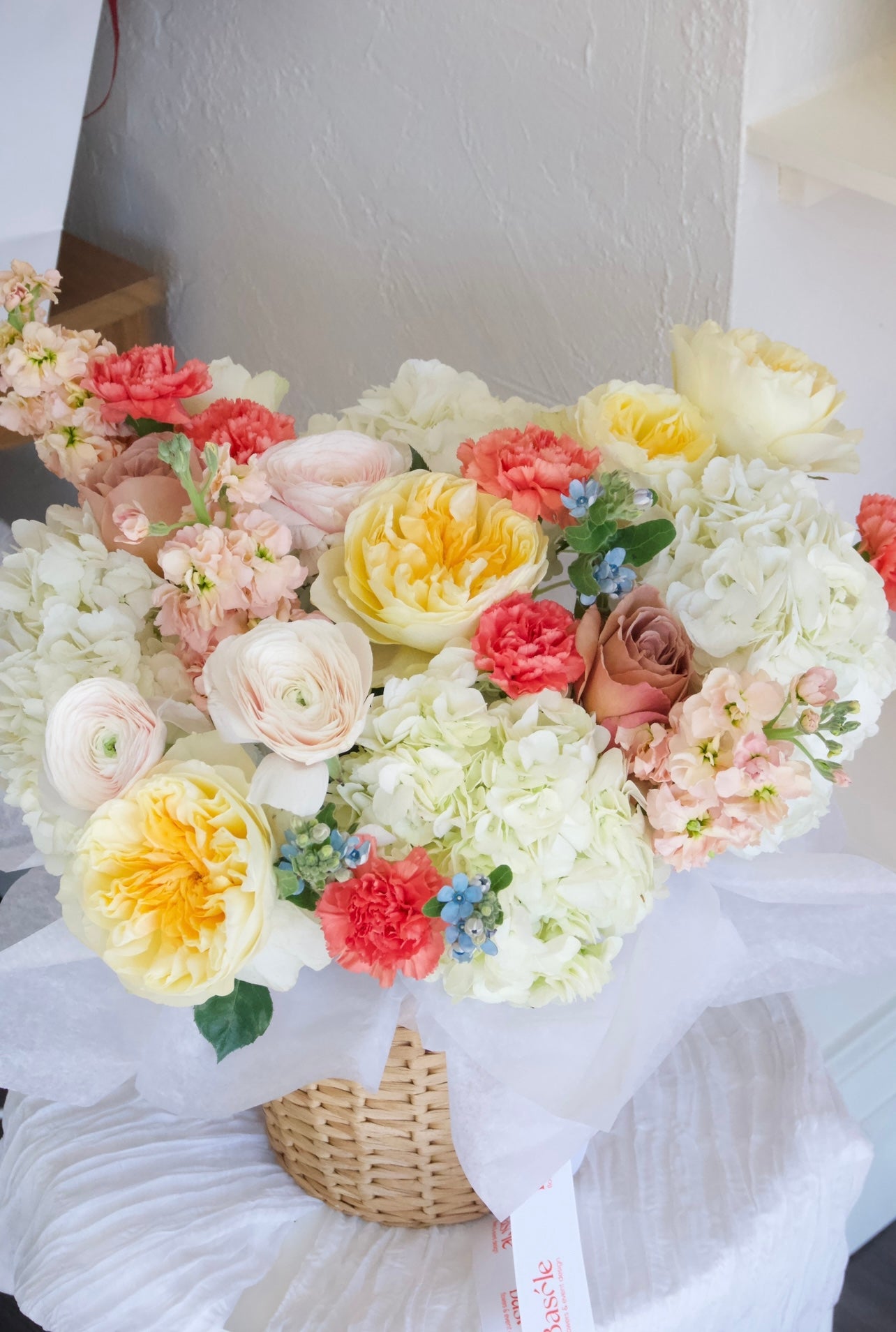 Please note: We work with seasonal flowers, so the composition of the bouquet may occasionally vary. However, it will always match the chosen color palette and overall style- and of course, remain at the same price.